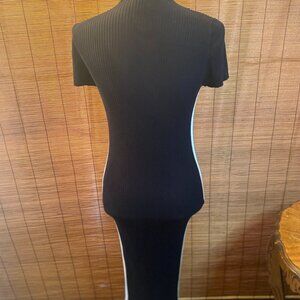 Zara Knit Black Maxi Mock Turtleneck Dress with Racing Stripe Size Med EUC