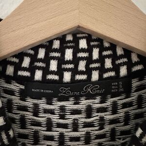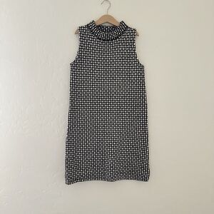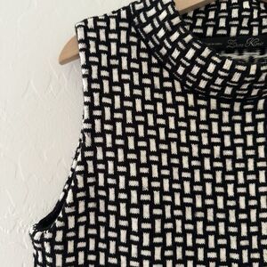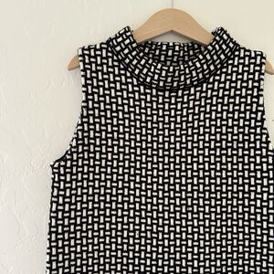 Zara Knit Black White Geometric Sleeveless Mini Dress Mock Neck Size Small