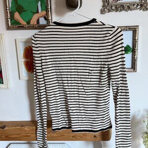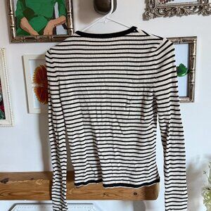 Zara Knit Black & White Striped Ribbed Cardigan with Ruffle Sleeves