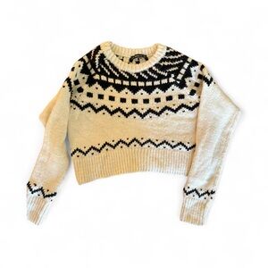 Zara Knit Black and Cream Jacquard Chunky Sweater Cropped