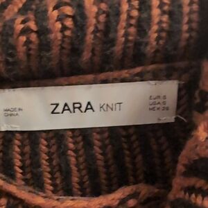 Zara Knit Brown and Black Striped Turtleneck Sweater Ribbed Oversized Size Small