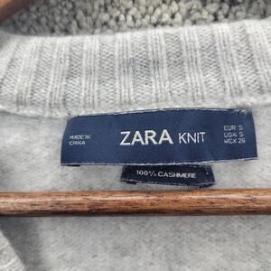 Zara Knit 100% Cashmere Small Oatmeal Beige V Neck Pullover Jumper Sweater