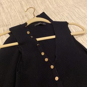 Very soft knit long dress in the color dark navy with gold buttons. Recently dry cleaned. Like new and stretchy.