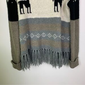 Zara Knit Cowichan Knit Fringe Sweater Womens Size M