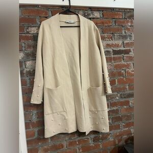 Zara Knit Cream Open Front Cardigan with Pearls Size S