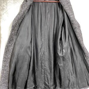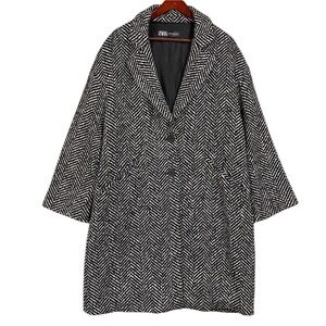 Zara Knit Herringbone Longline Two Button Coat Blazer Size XL Black White