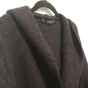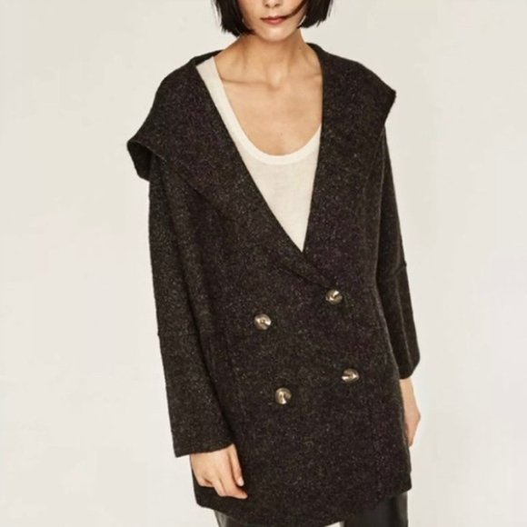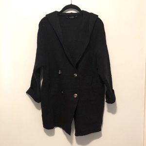Zara Knit Hooded Double-Breasted Cardigan Navy L