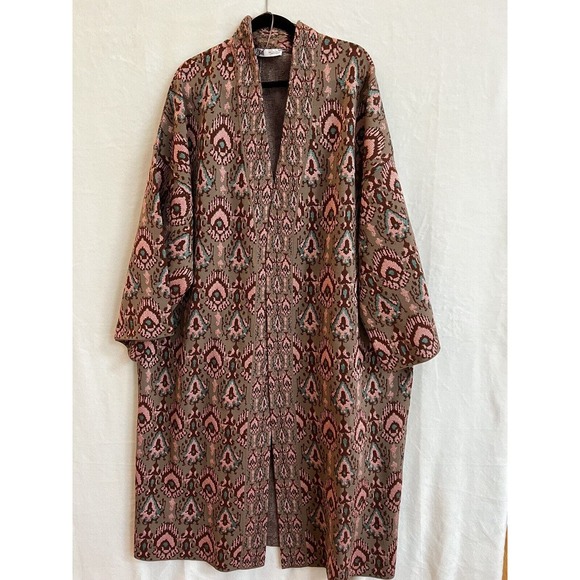 Zara Knit Kimono Coat Special Edition Jacquard Knit Size L Boho Sweater