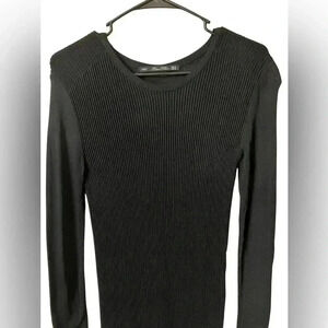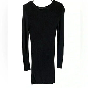 Zara Knit Lightweight Sheer Long Sleeve Bodycon Dress Black