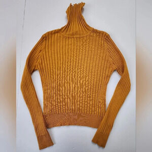 Zara Knit Mellow Yellow Ribbed Viscosa Long Sleeve Pullover Sweater, Warm, sz Lg