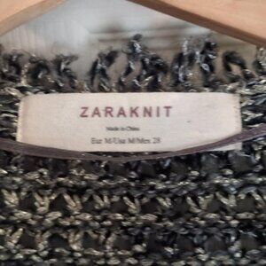 Zara Knit Metallic Sz Med Womens Cardigan Sweater Crochet Fringe Wool Bohemian