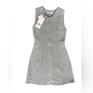 Zara Knit Mini Dress Wool Blend Gray Bodycon Front Zipper Fall Winter Small NWT
