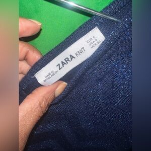 Zara Knit Navy Blue and Black Metallic Chevron Maxi Dress size Small