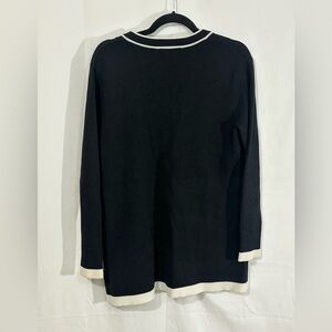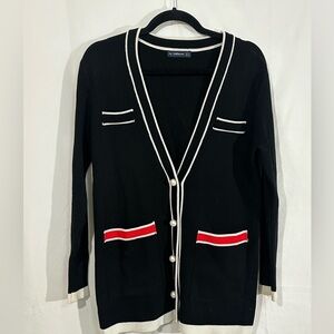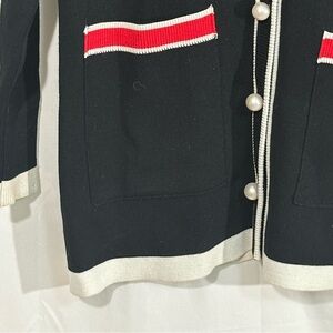 Zara Knit Pearl Button Cardigan Sweater Black White Trim Red Pockets Women’s S