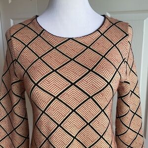 Zara Knit Red, Black & Tan Geometric Print Dress Size Medium