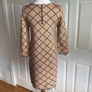 Zara Knit Red, Black & Tan Geometric Print Dress Size Medium