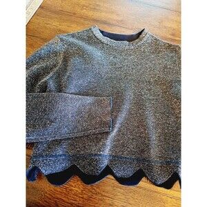 Zara Knit Size Large Black Gold Metallic Cropped Scalloped Pullover Sweater No stains or rips. Pre-owned.