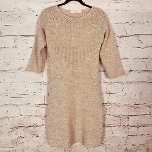 Zara Knit Sweater Dress Women’s Large Beige Marled Texture Cottagecore Knitwear