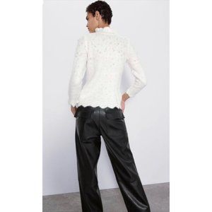 Zara Knit Sweater With Pearl Embellishments