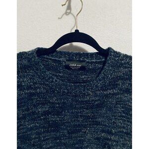 Zara Knit Sweater Womens Medium Marled Blue Knit Oversized Grandpa Boyfriend