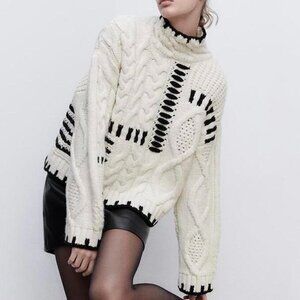 Zara Knit Sweater w/ Contrasting Topstitching in White