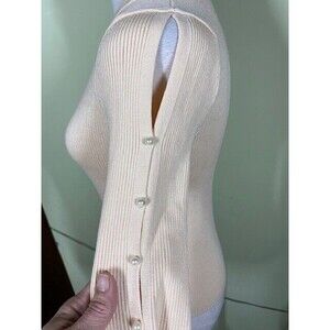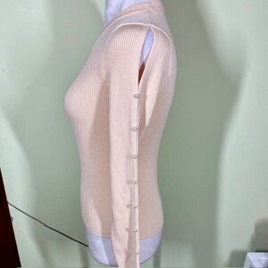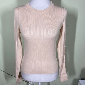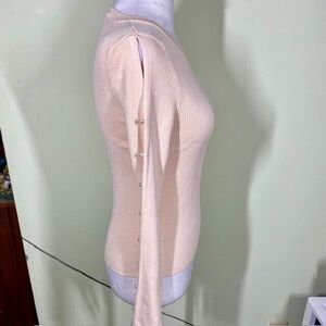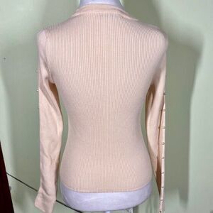 Zara Knit Women's Light Pink Pearl Accent Slit Long Sleeve Ribbed Sweater Size S