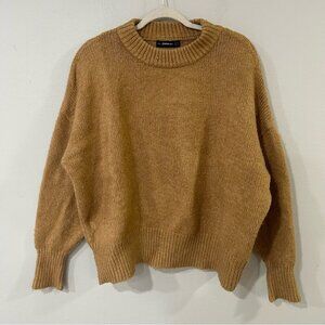 This Zara sweater in a soft tan color features a chic crewneck design, offering both warmth and style. Crafted from a cozy knit, it provides a relaxed fit perfect for layering during cooler days.