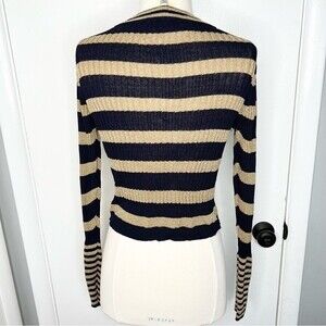 Zara Knit Top Navy and Metallic Gold Stripe Long Sleeve Crop Stretch