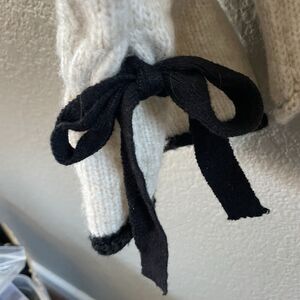 Zara Knit Turtleneck Sweater Womens Medium Cream Black Bow Tie Sleeves Alpaca