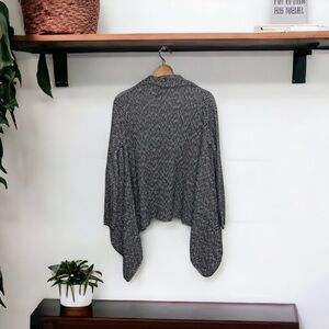 Zara Knit Tweed Waterfall Cardigan Sweater Black White Open Front Long Sleeve.