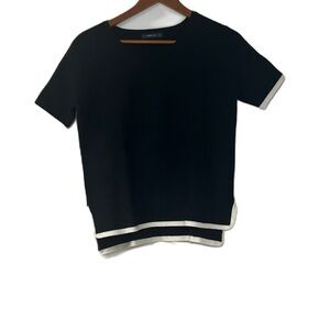 - Zara Knit Womens Black Short Sleeve Sweater Sz M cropped casual work white trim