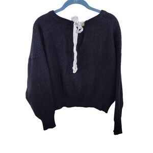 Zara Knit Womens M Black Ribbed Knit Long Dolmon Sleeve Tie Back Sweater. No flaws please see pictures for details.