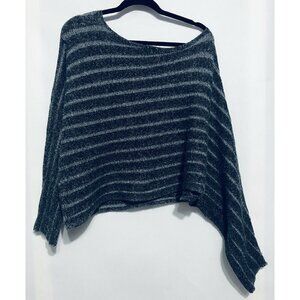 Zara Knit Womens Medium Gray Stripe Off Shoulder Cropped Slouchy Sweater Boho