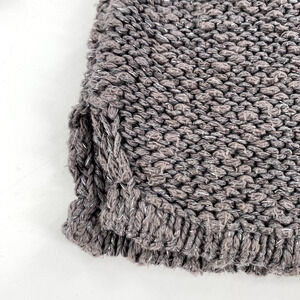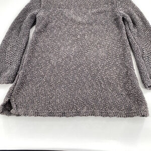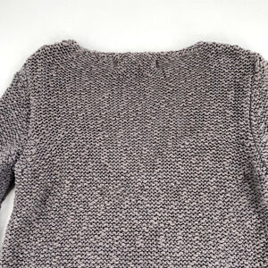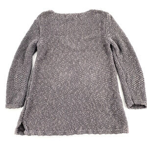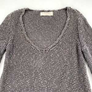 Zara Knit Womens Open Knit Deep V-Neck Sweater Sz L Grey Silver Split Hem