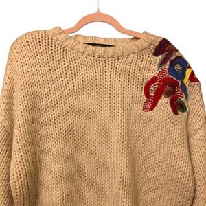 Zara Knit Women's Oversized Chunky Knit Floral Embroidered Sweater Size Small