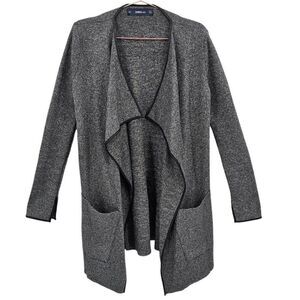 Zara Knit Womens S Oversized Open Front Faux Leather Trim Cardigan Sweater