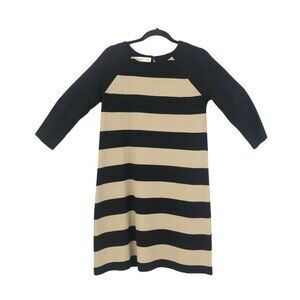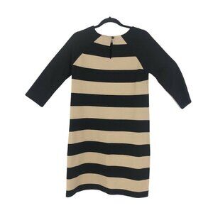 Zara Knit Womens Size Large Beige Black Stripe 3/4 Sleeve Shift Dress Bust: 36" Length: 34" Shoulder to Hem