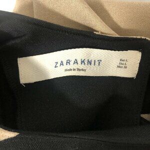 Zara Knit Womens Size Large Beige Black Stripe 3/4 Sleeve Shift Dress
