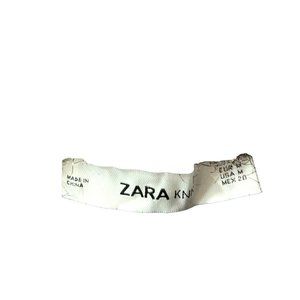 Zara Knit Womens Size Medium Pullover Black Gold Speckles Flecks Crew Neck Fuzzy