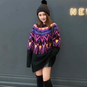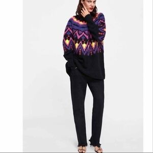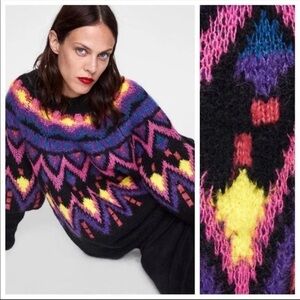 Zara knit multicolor wool blend oversized knit sweater in geometric shapes size small. Pre owned and in excellent condition with no flaws. Pit to pit 23” length 30” sleeves 17.5”