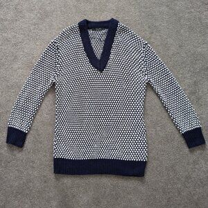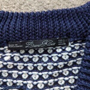 Zara Knit blue and white hollow pullover sweater size Large