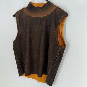 Zara Knitted Distressed Ombré Effect Orange Lined Mock Neck Top