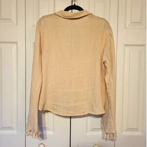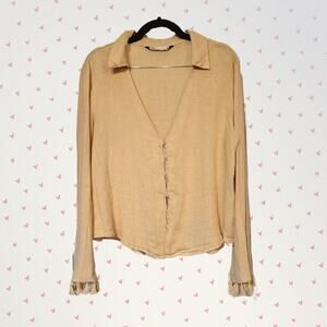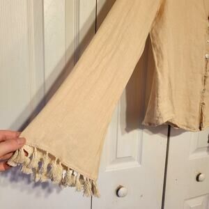 Zara, L | Linen Fringe Button Down Bell Sleeve Flowy Deep Neck Line