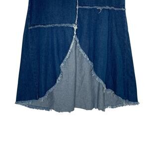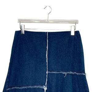 Zara L Womens Midi A-Line Denim Skirt Dark Blue Festival Western Patchwork