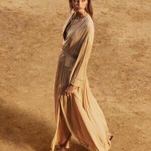 Zara LIMITED EDITION LONG SLIT DRESS Camel Size XL New With Tags