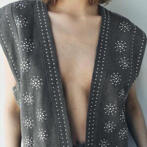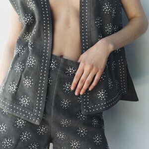 Zara LINEN BLEND EMBROIDERED VEST ZW COLLECTION Small