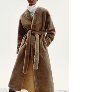 Zara LONG FAUX FUR COAT ZW COLLECTION