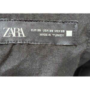 The Zara LYOCELL-COTTON BALLOON FIT TROUSERS in black, size 29, are stylish and versatile dress pants perfect for casual occasions in the spring and summer seasons. Made from comfortable cotton material, these pants feature a solid pattern, zip closure, and are machine washable for easy care. With a flattering balloon fit and a classic black color, these trousers from Zara are a great addition to any woman's wardrobe.