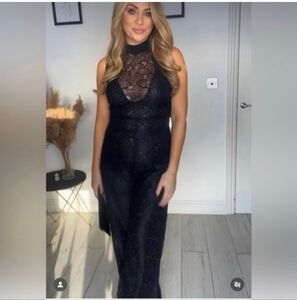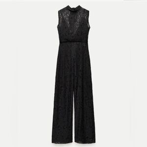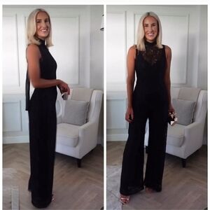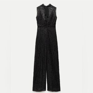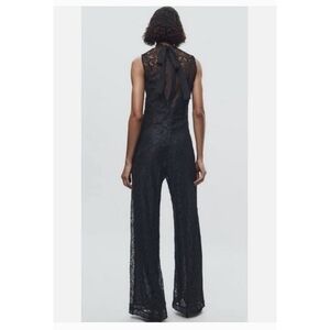 High collar jumpsuit with self bow. Strapless. Wide leg. Tonal interior lining. Back hidden in-seam zip closure.