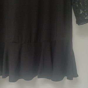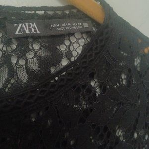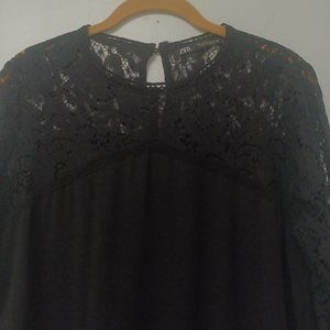 Zara Lace Long Sleeve Black Mini Dress, Ruffled Bottom, Size M